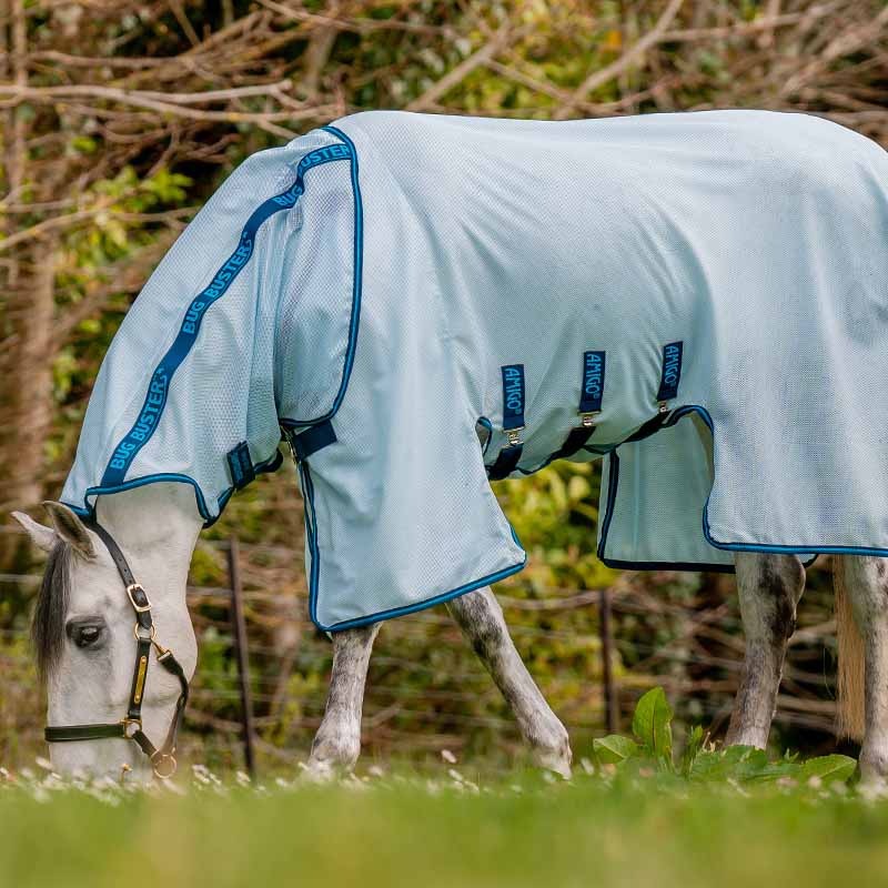 Insektstäcket har tillsist försetts dubbla bogspännen, avtagbar hals och ett extra långt svansskydd, samt extra långa sidor och täckande magdel för maximalt skydd. Vid manke, hals och bog har Bug Buster även utrustats med ett silkeslent foder på insidan, för att minimera risken för skav och friktion.
