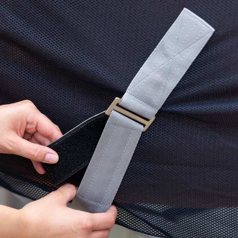 Flugtäcket RugBe från Covalliero är ett lätt och luftigt skydd för din häst, tillverkat i marinblå polyester. Detta täcke ger ett effektivt skydd mot irriterande flugor och stickande insekter, samtidigt som det är bekvämt att bära. Det fjäderlätta och andningsbara meshmaterialet säkerställer god luftcirkulation och snabb torktid, vilket gör det idealiskt för användning i stallet eller vid transport. Täcket har avtagbara kryssgjordar för en säker passform och flexibel användning, samt ett praktiskt kardborrespänne framtill.
