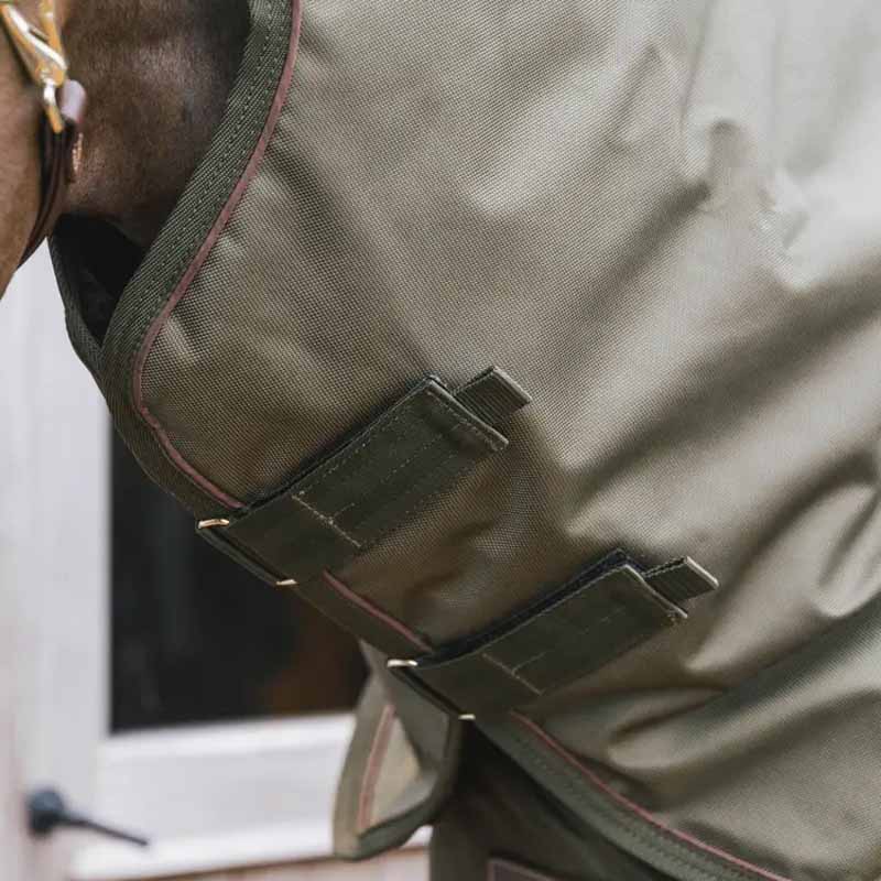 Halsen All Weather Waterproof Pro 150g är en praktisk och hållbar lösning för att skydda din hästs hals under alla väderförhållanden. Den är designad för att användas tillsammans med vårt Turnout Rug All Weather, vilket gör den till ett utmärkt komplement för att hålla din häst varm och torr. Yttermaterialet är tillverkat av 1680 Denier hög hållfasthetspolyester, vilket gör halsstycket extremt starkt, hållbart och smutsavvisande. Den PU-beläggning som är både vattentät och andas gör att den klarar av alla väderförhållanden. För att förhindra skav på manen är kanten bakom öronen fodrad med konstgjord kaninpäls. Halsstycket fästs enkelt på täcket med fyra starka kardborrefästen och har dessutom två extra kardborrestängningar. Det är maskintvättbart vid 30°C, men torktumla inte.