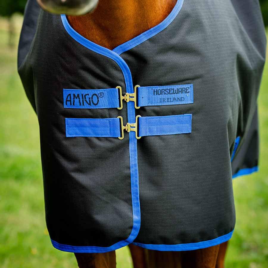 Amigo Ripstop 900 Original 50g - högkvalitativt, lätt fodrat regntäcke från Horseware. Tillverkat av slitstark 900D Ripstop-polyester, vilket säkerställer såväl en vattentät yta som en god andningsförmåga, och fodrat med 50g fiberfyllning för lite extra värme i övergångsperioderna.