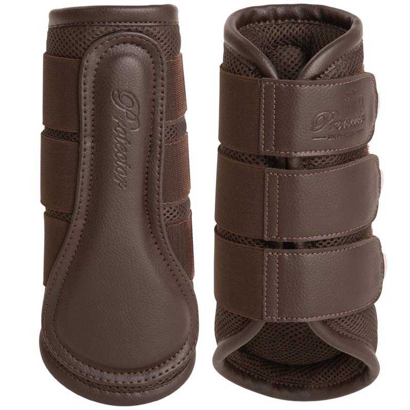 Lätta och välventilerande damasker från Protector, framtagna för att ge ett stabilt skydd utan att kompromissa med komfort eller rörlighet. De bruna benskydden är tillverkade i slitstark 3D-mesh som släpper igenom luft och hjälper till att hålla benen svala, även under intensiva ridpass. Fodret är följsamt och har en mycket bra andningsförmåga vilket gör att dem även lämpar sig väl att använda som hagskydd.