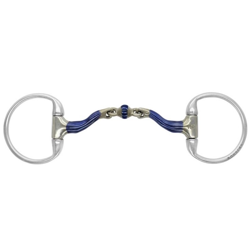 Eggbett McHardy Dressage från Bombers är utformat för att ge en stabil och trygg kontakt i hästens mun. De fasta ringarna bidrar till att bettet ligger still och minskar risken för att hästen nyps i läppar och mungipor. Med en medelhög port ger det gott om utrymme för tungan och minskar trycket, vilket är idealiskt för hästar som är känsliga i tungan eller tenderar att bli låga i formen. Den centrala delen, Buster Rollern, är tillplattad för att sprida trycket över en större yta och skapa en mjukare känsla. Bombers bett tillverkas för hand i Sydafrika och finns i många storlekar och varianter, med möjlighet att välja olika mundelar, ringar eller skänklar samt tjocklek.