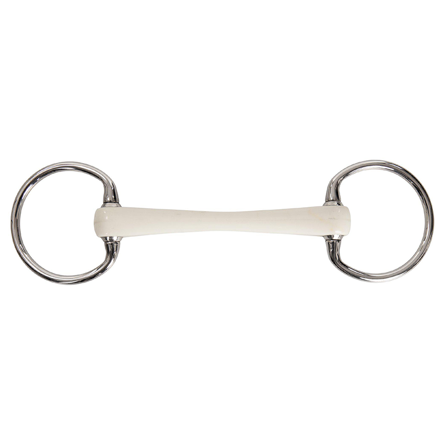 Rakt, böjbart eggbett, från Lippo, med fasta ringar. Den flexande mundelen, som anpassar sig efter hästens rörelser, är tillverkad av UV-stabiliserad Polyuretan, samt försedd med en ingjuten stålvajer för extra hållbarhet och säkerhet.