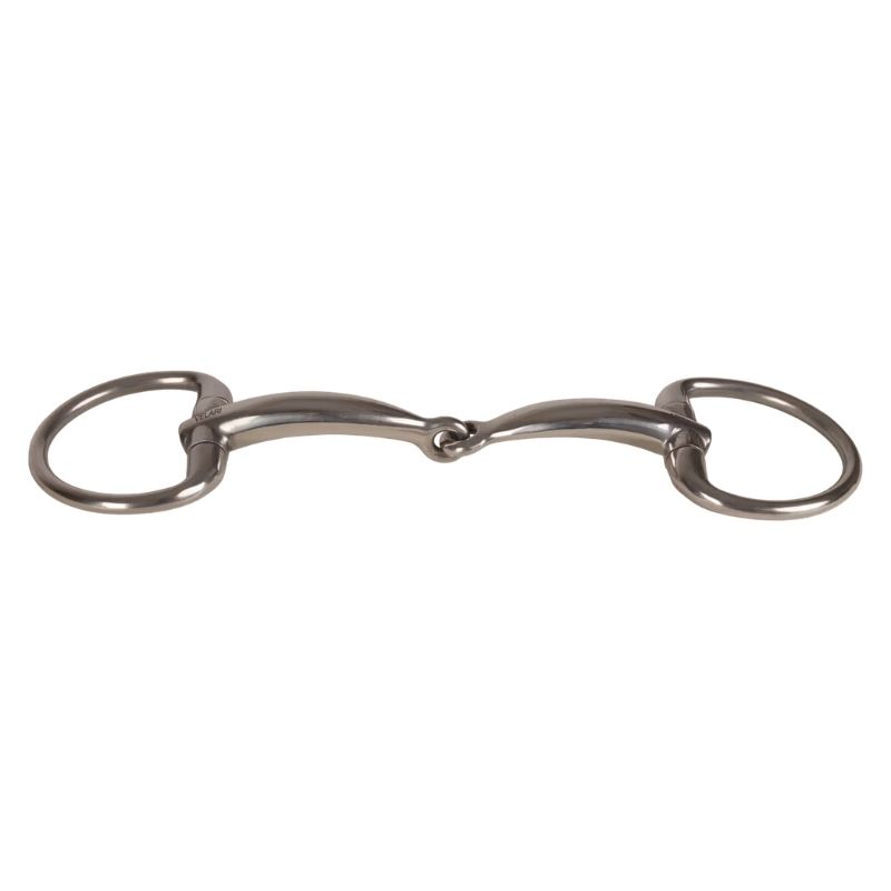 Tvådelat eggbett från Velari är tillverkat av rostfritt stål och erbjuder en tydlig och direkt inverkan. Bettet har fasta ringar som ger ökad stabilitet och jämna tygelhjälper, vilket gör det till ett utmärkt val för hästar med högre gom eller de som föredrar en tydlig och definierad inverkan. Den tvådelade mundelen formar en V-form vid tygeltag, vilket fördelar trycket jämnt över tungan och lanerna. Rostfritt stål ger en neutral och stabil kontakt utan att påverka smaken. Tjocklek 16 mm.