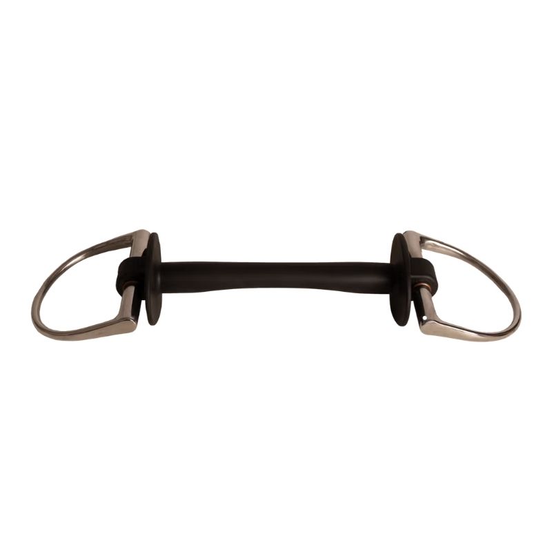 Hästar som ogillar stela eller metalliska bett svarar ofta med ökad avslappning och bättre acceptans. Den raka, mycket flexibla mundelen följer mjukt hästens munform och eliminerar nötknäppareffekten från ledade bett. Flexibiliteten dämpar tygeltag och fördelar trycket jämnt, vilket gör det lättare för känsliga hästar att söka ett mjukt stöd fram till handen. Tjockleken på 20 mm ger en bred tryckfördelning och är särskilt skonsam mot känsliga tungor och laner.