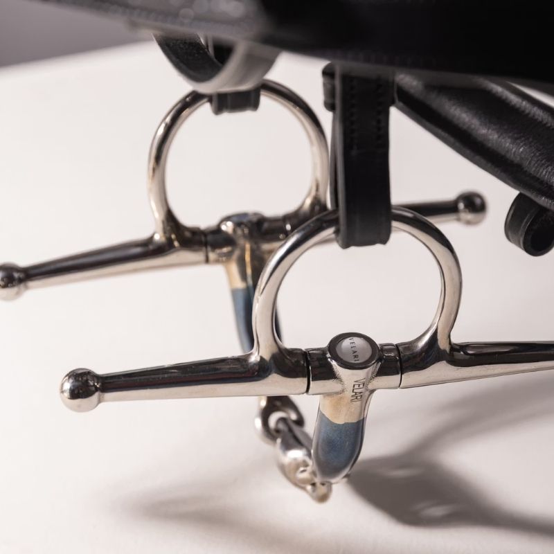 Tredelat fullcheekbett från Velari erbjuder jämn tryckfördelning och stabilitet. Mundelen är tillverkad av sweet iron, vilket främjar salivering och avslappning hos hästen. Fullcheek-skänklarna ger ett tydligt sidledsstöd, vilket gör det särskilt lämpligt för yngre eller mindre erfarna hästar. Den tredelade konstruktionen minskar nötknäppareffekten och fördelar trycket jämnt över tungan och lanerna, vilket ger en mjuk och följsam känsla. Detta bett passar hästar med lägre gom och de som är känsliga för tryck från tvådelade bett. Mundelen i sweet iron oxiderar naturligt och utvecklar en patina som kan förbättra acceptansen. Skölj i varmt vatten efter användning och torka noggrant. Förvara torrt och kontrollera regelbundet slitage.