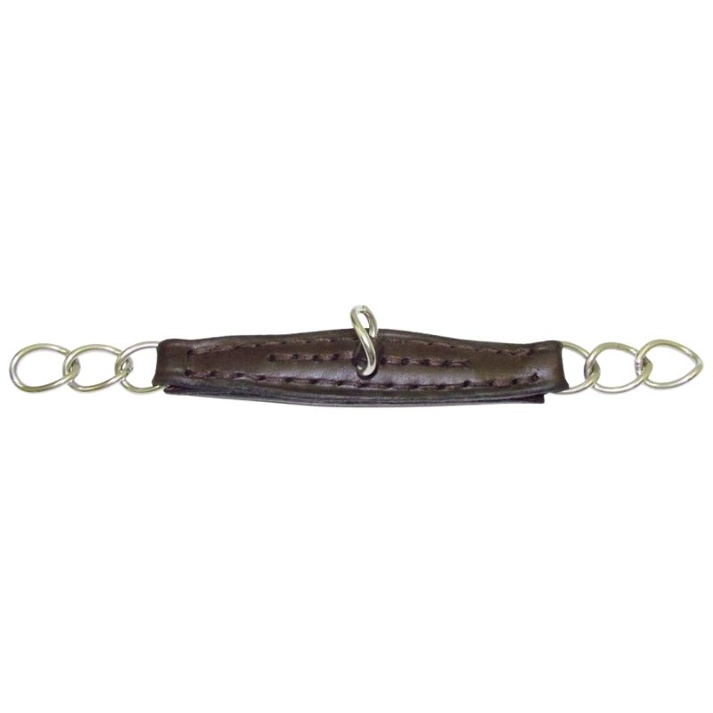 Kindkedja Leather Brun från Bombers är ett alternativ till den klassiska kindkedjan med en mjukare inverkan. Den är utformad med en läderplatta i mitten och kedjeavslut i ändarna, vilket ger en mer fördelad och skonsam tryckfördelning under hästens käke. Konstruktionen gör den särskilt lämplig för ryttare som upplever att en vanlig metallkedja blir för skarp, samtidigt som den bibehåller sin funktion att stabilisera bettet och reglera när hävstångseffekten aktiveras.