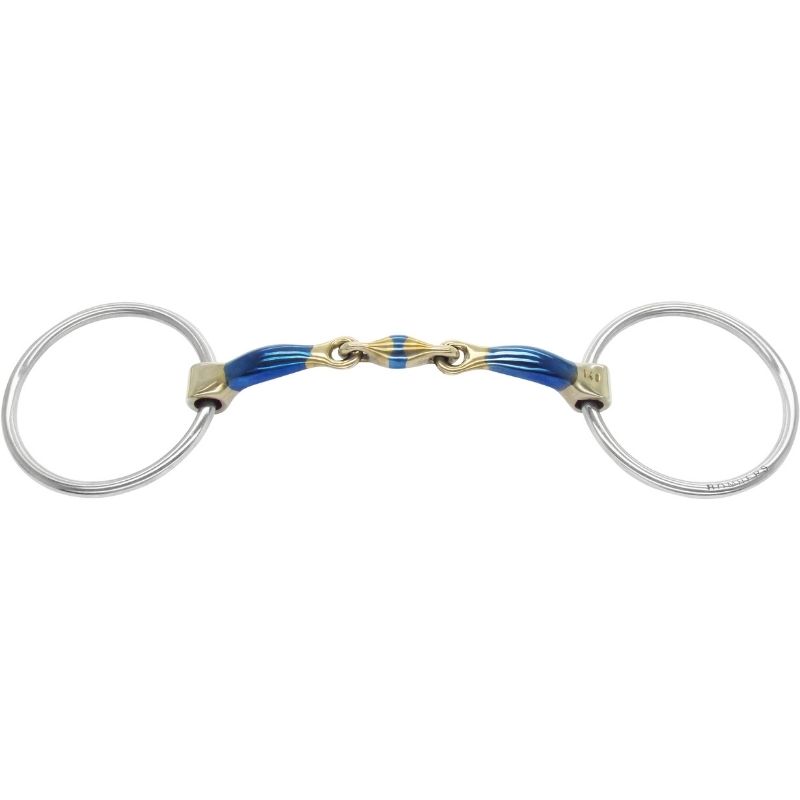 Tränsbett med lösa ringar Elliptical från Bombers erbjuder en direkt och tydlig kontakt med omedelbar eftergift. När tygeln släpps återgår bettet snabbt till en neutral position i hästens mun, vilket minskar trycket på både tunga och laner. Den tredelade mundelen har en 45 mm lång, elliptiskt formad mittdel, vilket ger en något starkare inverkan än Control Plate. Detta gör det särskilt lämpligt för hästar som gärna trycker mot bettet med tungan, då det uppmuntrar hästen att lätta i kontakten och hitta en mer balanserad form. För ökad stabilitet kan användning av bettskivor eller bettrem vara fördelaktigt. Bombers bett tillverkas för hand i Sydafrika och finns i ett brett utbud av storlekar och varianter, med stora möjligheter till anpassning. Mundelarna är tillverkade i sweet iron och mässing, medan ringar och skänklar är i rostfritt stål.