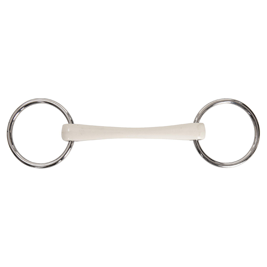 Rakt, böjbart tränsbett, från Lippo, med lösa ringar. Den flexande mundelen, som anpassar sig efter hästens rörelser, är tillverkad av UV-stabiliserad Polyuretan, samt försedd med en ingjuten stålvajer för extra hållbarhet och säkerhet.