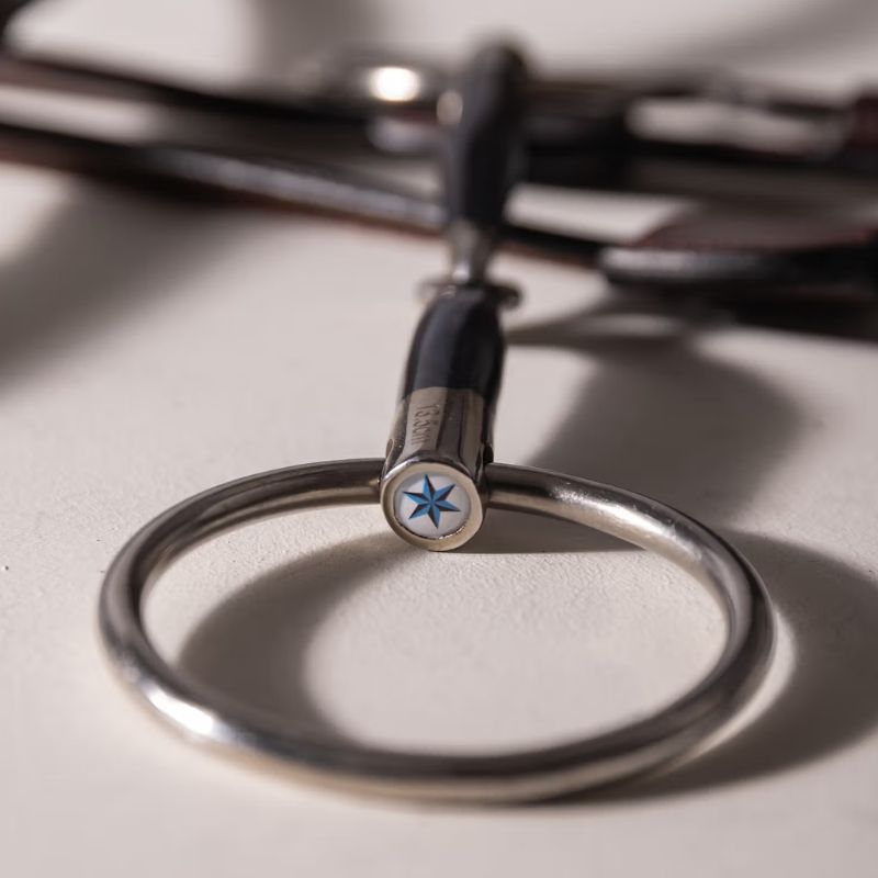 Tvådelat bett med lösa ringar, utformat för att ge en tydlig och direkt inverkan. Mundelen är tillverkad i sweet iron, vilket främjar naturlig salivering och avslappning hos hästen. De lösa ringarna ger ökad rörlighet och möjliggör precisa tygelhjälper, vilket resulterar i en mjuk och följsam kontakt genom hela ridpasset.
