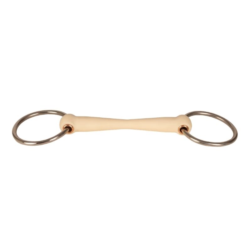 Velari Tränsbett Flex med Lösa Ringar Soft 20mm är designat för hästar som behöver en mjukare och mer eftergivlig mundel. Den är tillverkad av ett mjukt, giftfritt syntetmaterial som är säkert för daglig användning. Den släta ytan skyddar känslig vävnad i munnen, medan den flexibla kärnan gör att bettet kan följa hästens naturliga rörelser. Detta tränsbett är särskilt lämpligt för hästar med känslig mun eller unga hästar som lär sig acceptera bettet. Tjockleken på 20 mm ger en jämn tryckfördelning och är skonsam mot känsliga laner och tungor. De lösa ringarna ger ökad rörlighet och uppmuntrar lätt tuggaktivitet, vilket hjälper hästen att förbli mjuk och uppmärksam i handen. Skölj i varmt vatten efter användning, torka noggrant och förvara torrt. Kontrollera regelbundet att ytan är jämn.