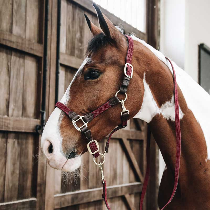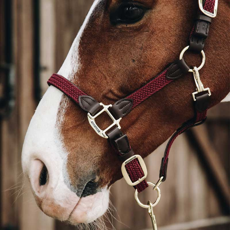 Elegant flätad grimma tillverkad i nylon och 100% djurvänligt, artificiellt läder av högstakvalité. Fördelen med konstläder är att det inte absorberar vatten eller smuts, något som förlänger livslängden rejält, samt att det är betydligt mer slitstarkt och inte tappar eller ändrar färg. Det är dessutom mer flexibelt och är redan vid första användningen mjukt och följsamt, vilket höjer komforten för hästen. grimman kan justeras på två ställen, dels på ena sidan, men också undertill, något som gör det lätt att passa in den och få den att sitta bra på de allra flesta hästar. metall-detaljerna är guldfärgade och passar därför perfekt till Kentuckys grimskaft. Viktigt att tänka på är att inte göra rent konstläder med glycerintvål, använd istället Kentuckys Tack Cleaner som är anpassad för syntetiska material. Går även att maskintvätta i 30 grader. Artikelnummer: