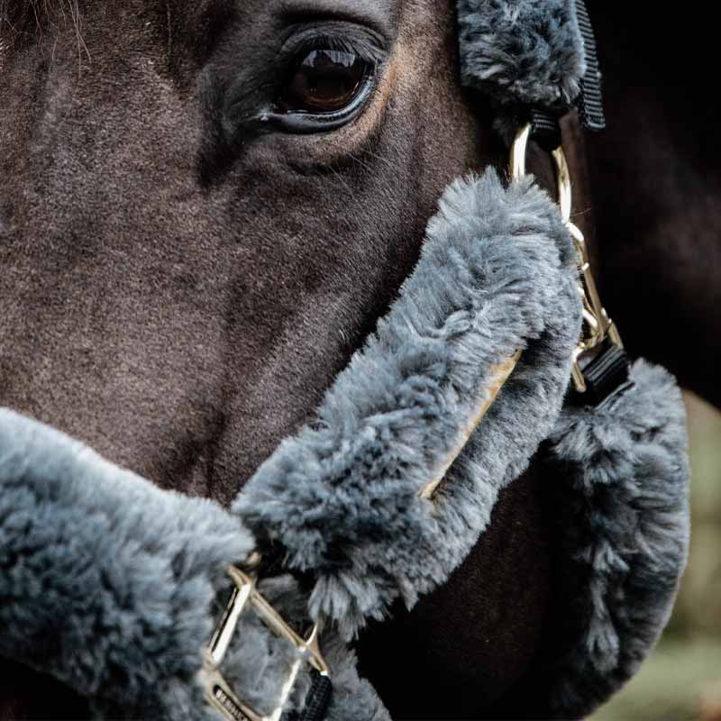 Kentucky Horsewears Grimma i konstgjord fårskinn är en extremt mjuk och bekväm grimma som främst används under transport. Den är lätt och ger en hög komfort, vilket gör den idealisk för långa resor eller för hästar med känslig hud. Grimman är försedd med nylon och spännen som är täckta av konstgjord fårskinn, vilket skyddar hästen från skador. Den perfekta passformen och det snabba öppningssystemet med en karbinhake gör den enkel att använda. Grimman är utvecklad med erfarenhet från internationella groomer och är nu den mest använda under transport av hästar till stora tävlingar. För säkerhetens skull bryts grimman vid justeringspunkten om hästen skulle få panik. Vi erbjuder även individuella nackdelar för att enkelt kunna byta ut en trasig del. Grimman är maskintvättbar vid 30 grader, men vi rekommenderar att tvätta den så sällan som möjligt för att bevara kvaliteten. Låt den torka utomhus på en solig dag.