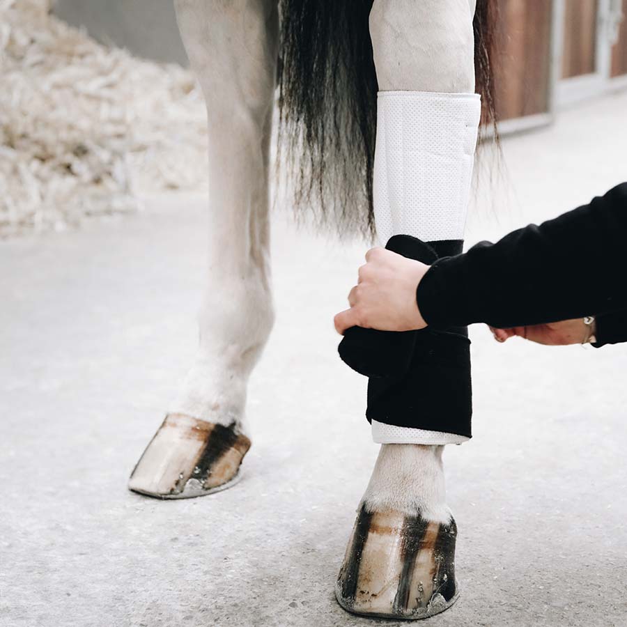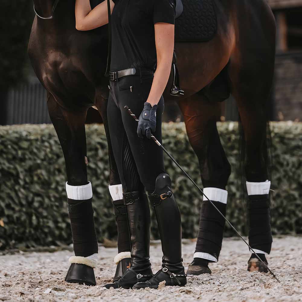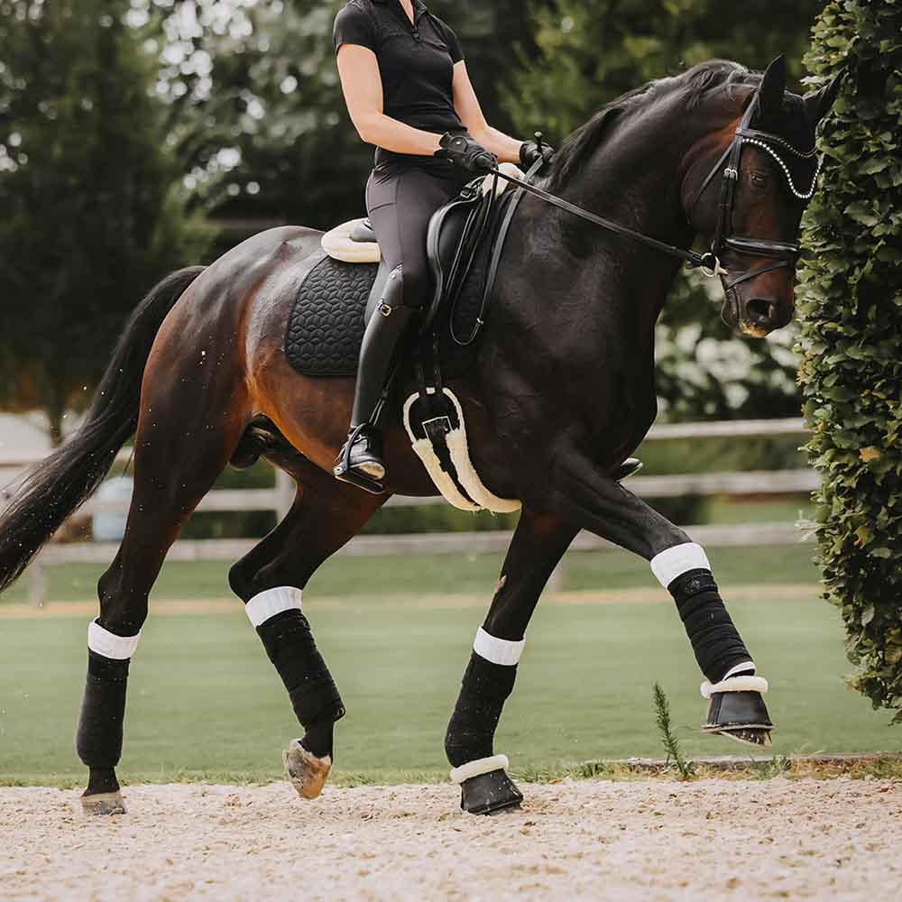 Working Bandage Pads Absorb är utformade för att hålla hästens ben torra och absorbera både svett och stötar. Tack vare det andningsbara materialet erbjuder dessa paddar bättre luftcirkulation för att förhindra överhettning. De glider inte ner och ger ett bra skydd mot huden. Dessa paddar kan användas tillsammans med stallbandage eller som medicinsk förband. De säljs i ett set om fyra och är lätta att sköta, speciellt framtagna för att klara maskintvätt vid 30°C (ingen torktumlare).