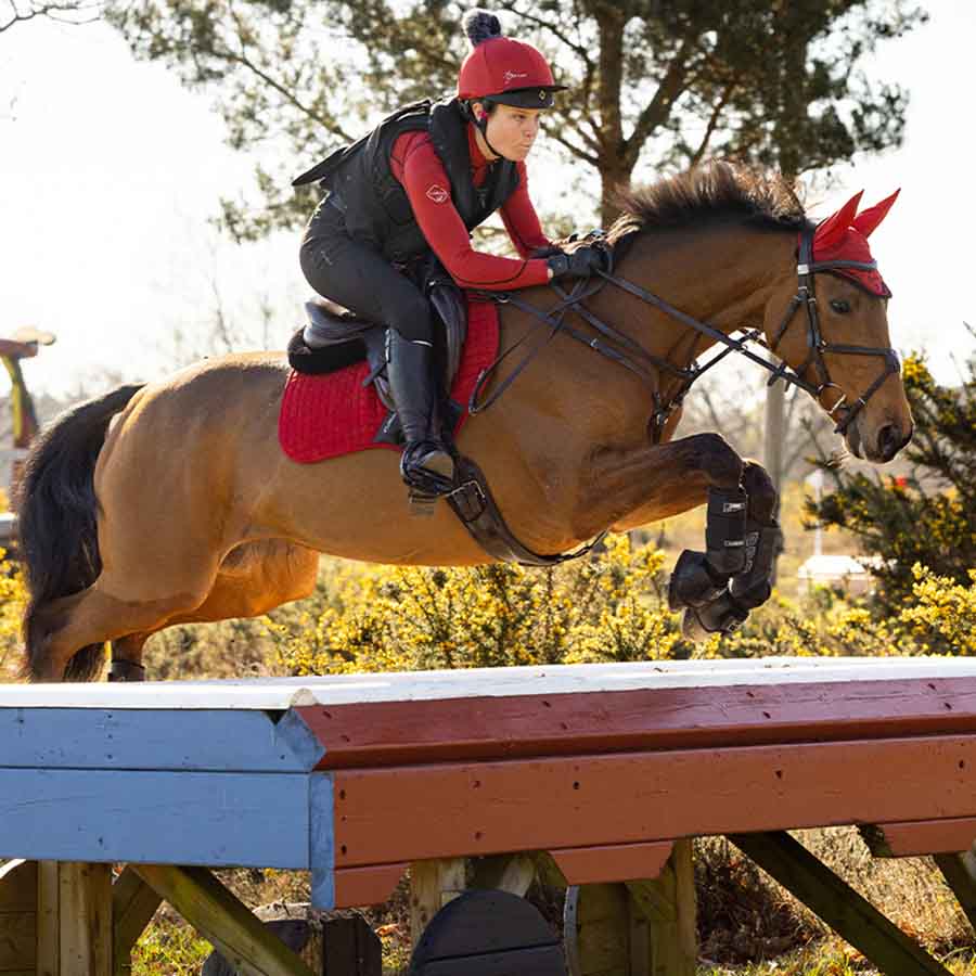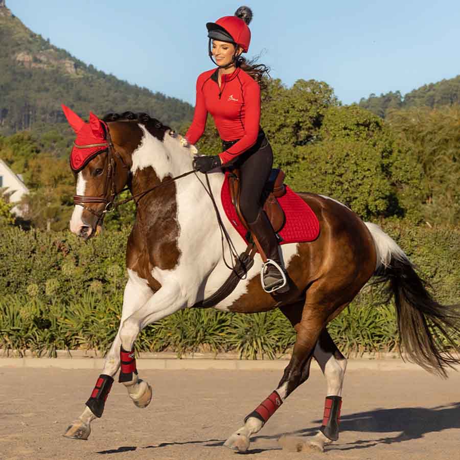 LeMieux Classic Close Contact Square är ett rött högkvalitativt hoppschabrak, perfekt för både vardagsridning och tävlingsdagar. Det är tillverkat i mockaliknande polyester, fuktreglerande bambuviskos, stötdämpande skum och formstabil polyfill – allt för optimal komfort och funktion.