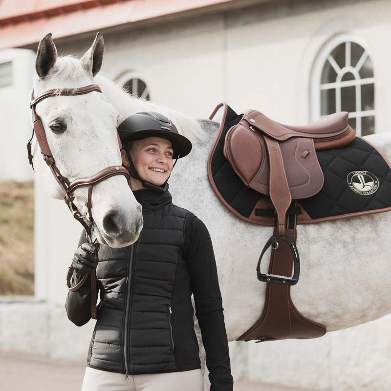 Lippo Schabrak i Waffle Texture är en del av Lippo Jumping Collection. Detta schabrak kombinerar lyxig mjukhet med stadga och har en snygg eco-läder piping. Den har en bra passform som ligger väl på hästen och insidan är tillverkad av ett högventilerat material i bomullsmix med Waffle Texture. Det slitstarka och hållbara materialet är svettabsorberande och har en naturlig andasfunktion. Sadelgjordsstrap med kardborre och en dekorativ broderad logo på vänster sida. Tvättas i 30 grader.