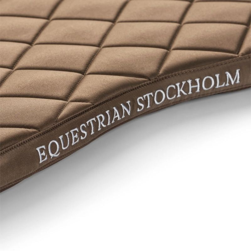 Dressyrschabraket från Equestrian Stockholm, modell ES Line, kommer i en elegant champagnefärg. Det är designat för att hålla din häst sval och torr tack vare den High IQ Cool Comfort-behandlade insidan som effektivt transporterar bort fukt och torkar snabbt. Schabraket har kantband, passpoal och vit brodyr för en stilren look. Kardborreband och en gjordrem säkerställer att schabraket sitter på plats under ridpasset. Tillverkat av hållbar polyester, är det byggt för att tåla regelbunden träning.