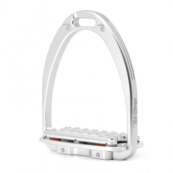 De klassiska stigbyglarna Siena Plus, i detta silvriga utförande från Tech Stirrup, är tillverkade i högkvalitativ metall, har en av de bredaste fotplattorna på marknaden och dessutom, till skillnad från Siena, inbyggd stötdämpning.