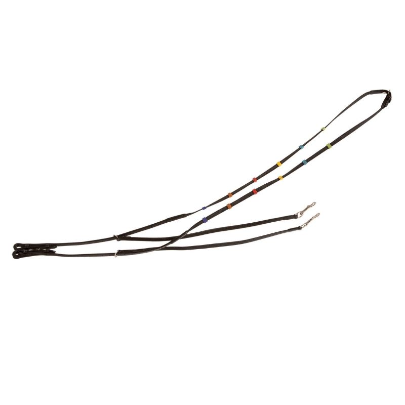 Lippo Molly Supergrip är en svart hjälptygel som erbjuder ett jämnt och säkert grepp tack vare sina färgade stoppar. Denna smarta tygel är särskilt användbar för ponnyer som tenderar att dra ner huvudet, då den hjälper ryttaren att hålla tygeln lika lång på båda sidor. Hjälptygeln är justerbar och fästs enkelt i sadelns D-ring med en pistolhake. Den har även en inbyggd elastisk vagga nära pistolhakarna för extra flexibilitet. Bredden på tygeln är 12,7 mm.