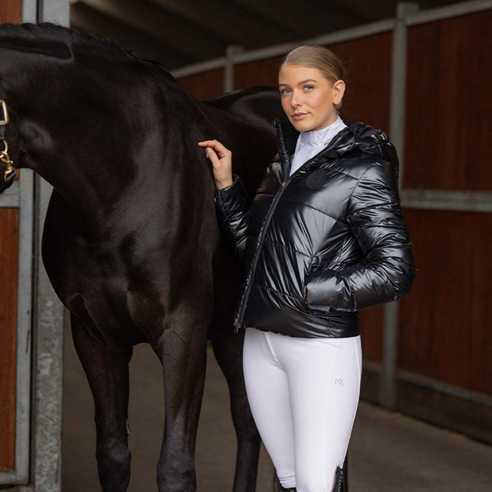 Kingsland KLMadison Metallic ridjacka för dam i svart är en stilren och funktionell jacka för ryttare. Den korta, isolerade designen med en metallisk finish gör den perfekt för både stallet och vardagen. Jackan har en DWR C0 PU-beläggning med en vattentäthet på 3K, vilket håller dig torr i lätt regn och fuktiga förhållanden. Dessutom är den vindtålig och ger utmärkt isolering för att hålla värmen under kyliga dagar.