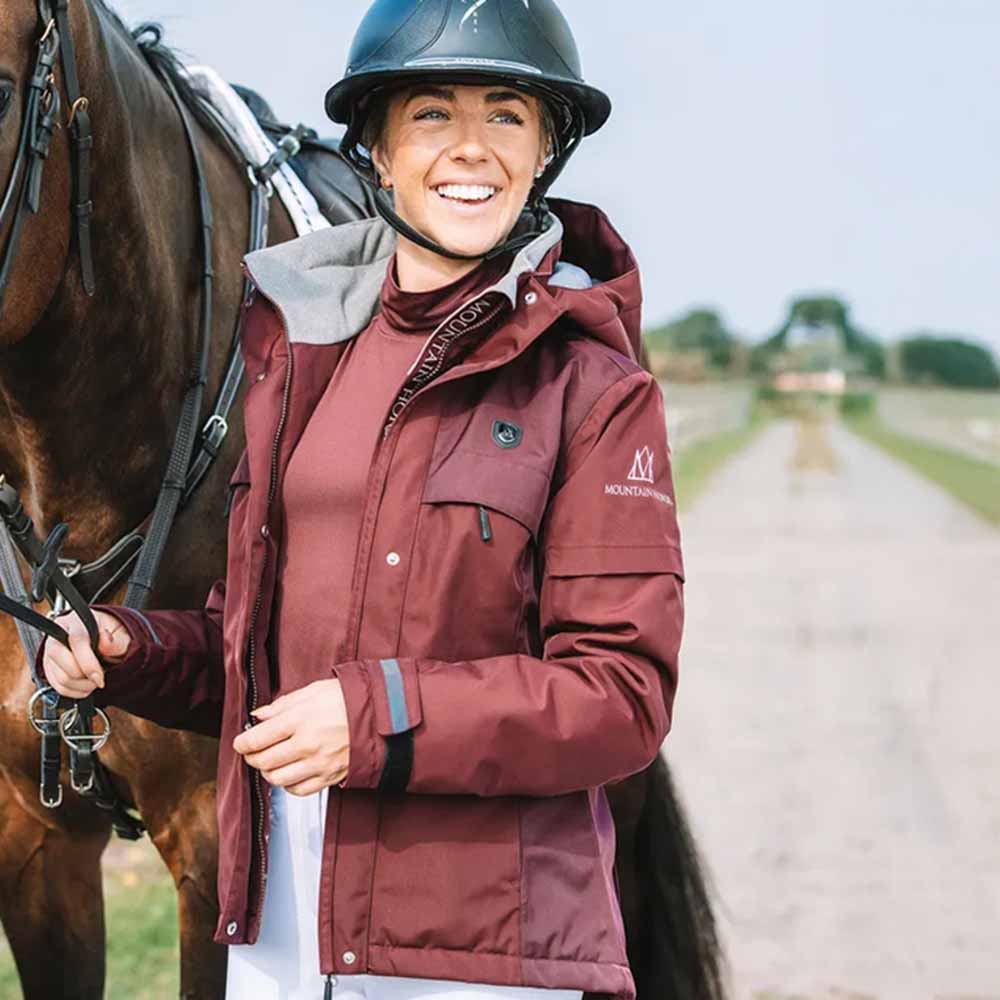 Mountain Horse Ridjacka Royal Grace är en uppdaterad version av deras klassiska ridjacka, designad för dam. Denna vinröda jacka erbjuder en attraktiv passform och funktionella egenskaper, perfekt för ridning. Den är helt tejpad, vattentät och andas, vilket gör den idealisk för alla väderförhållanden. Jackan har en 2-vägs YKK® huvuddragkedja för justerbarhet, avtagbar och justerbar huva för bra sidosikt, justerbar ärmflik och innerfoder för extra värme, flera säkra fickor och ridöppningar bak.