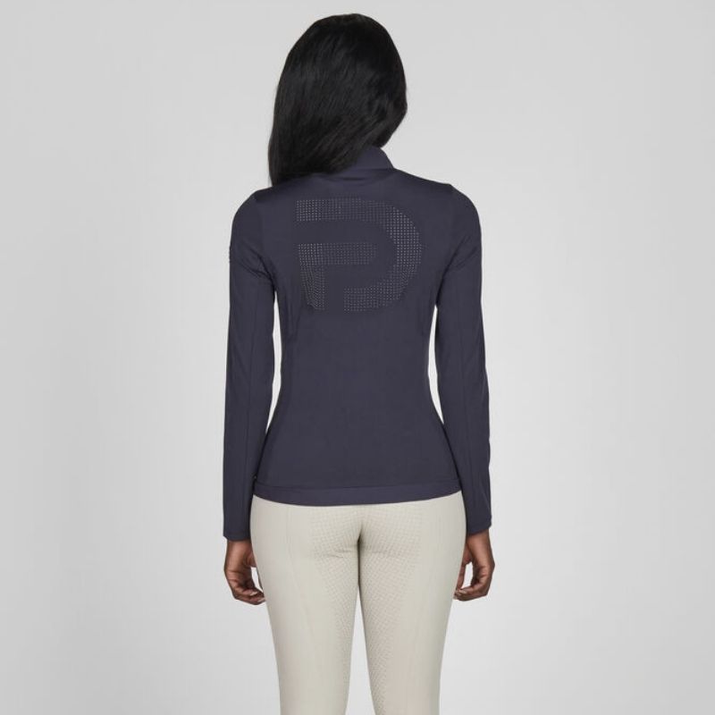 Pikeur Core funktionsjacka i marinblå är en mångsidig och presterande jacka som kombinerar komfort, hållbarhet och modern stil. Denna elastiska jacka har en sportig ståkrage och är tillverkad av ett slitstarkt, formande yttertyg som ger en smickrande passform och full rörelsefrihet. Lättviktigt ribbtyg vid kragen och bakre fållen ökar flexibiliteten och komforten. Perforerade paneler på sidorna, framsidan och baksidan säkerställer optimal ventilation, vilket gör jackan idealisk för aktiv användning. En ton-i-ton 2-vägs dragkedja framtill och matchande dragkedjor på sidofickorna ger ett rent och strömlinjeformat utseende med praktisk funktionalitet. Subtila detaljer med Pikeur-logga på innerplagget och ärmen fulländar designen.