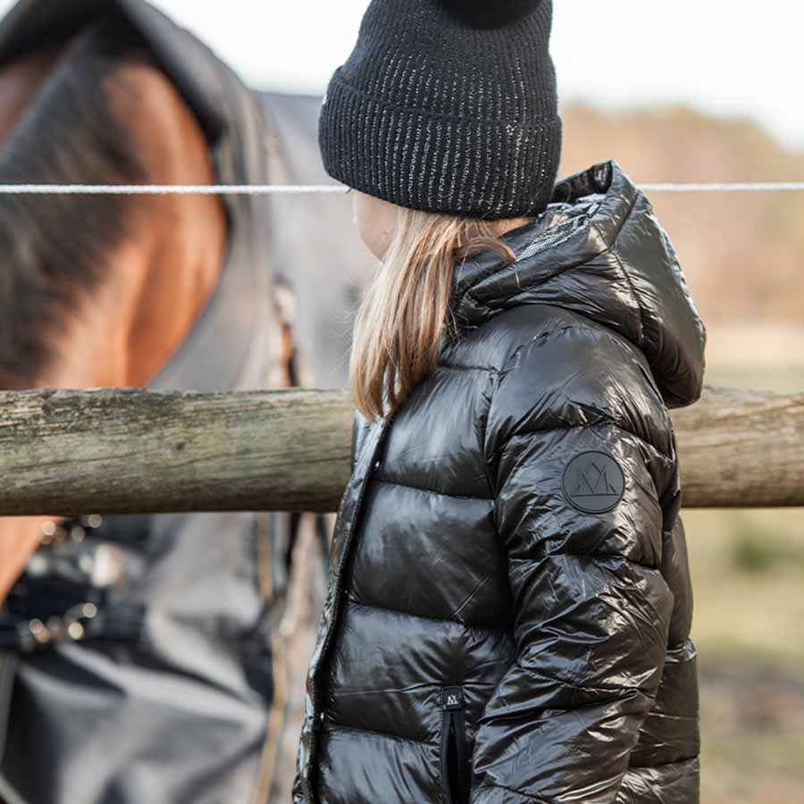 Mountain Horse extra långa barn- och juniorridkappa Irma, tillverkad i ett vind- och vattenavvsiande material av högsta kvalité, är försedd med såväl en värmande vaddering som ett värmetryckt foder - idealisk för långa, kyliga vinterdagar i stallet!