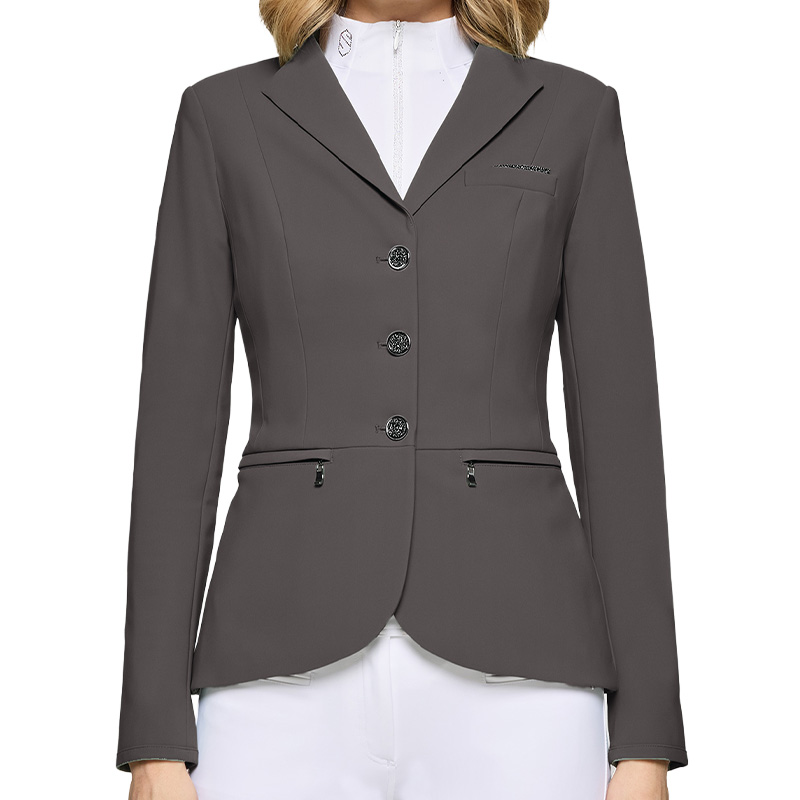 Samshield Victorine Crystal Fabric är en grå, högkvalitativ tävlingskavaj med figurnära passform och full rörelsefrihet. Kavajen är tillverkad i ett italienskt material med stretch, god andningsförmåga och snabbtorkande egenskaper, vilket säkerställer hög komfort även under de mest intensiva tävlingsdagarna. Insidan har ett tunt och stretchigt foder.