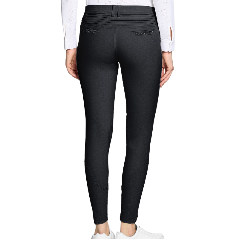 Samshield Adele knäskodda ridbyxor har en medelhög midja och ger en följsam passform och god rörelsefrihet. De är tillverkade i ett svart, italienskt material som är stretchigt, ventilerande och slitstarkt. Materialet motverkar noppor och är skrynkelfritt, vilket gör att det behåller sitt utseende över tid.