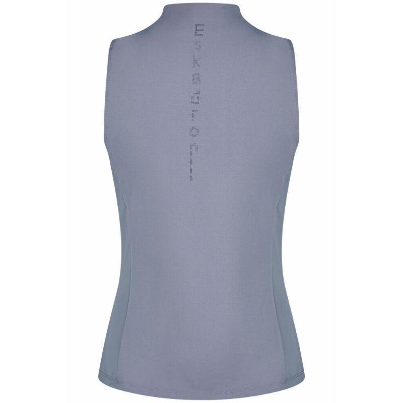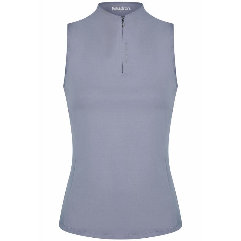 Eskadron's ridtopp, Tank Half Zip Classic Sports, är en ärmlös topp i en härlig lila färg. Den är tillverkad i ett tekniskt jerseytyg med 4-vägsstretch för optimal rörelsefrihet. Toppen har meshpartier på sidorna för extra ventilation och en figurnära passform som ger en stilren look. Framtill pryds den av Eskadrons logga, medan en lasercut-logga finns på baksidan.