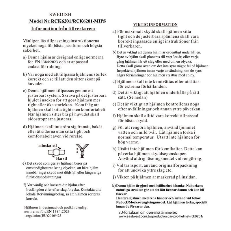 För att få en optimal passform kan storleken enkelt justeras baktill med hjälp av rattsystemet och det justerbara hakbandet. En avtagbar dekor-strap medföljer för extra stil. Hjälmen är godkänd enligt standard CE EN1384-2023, vilket garanterar att den uppfyller säkerhetskraven.