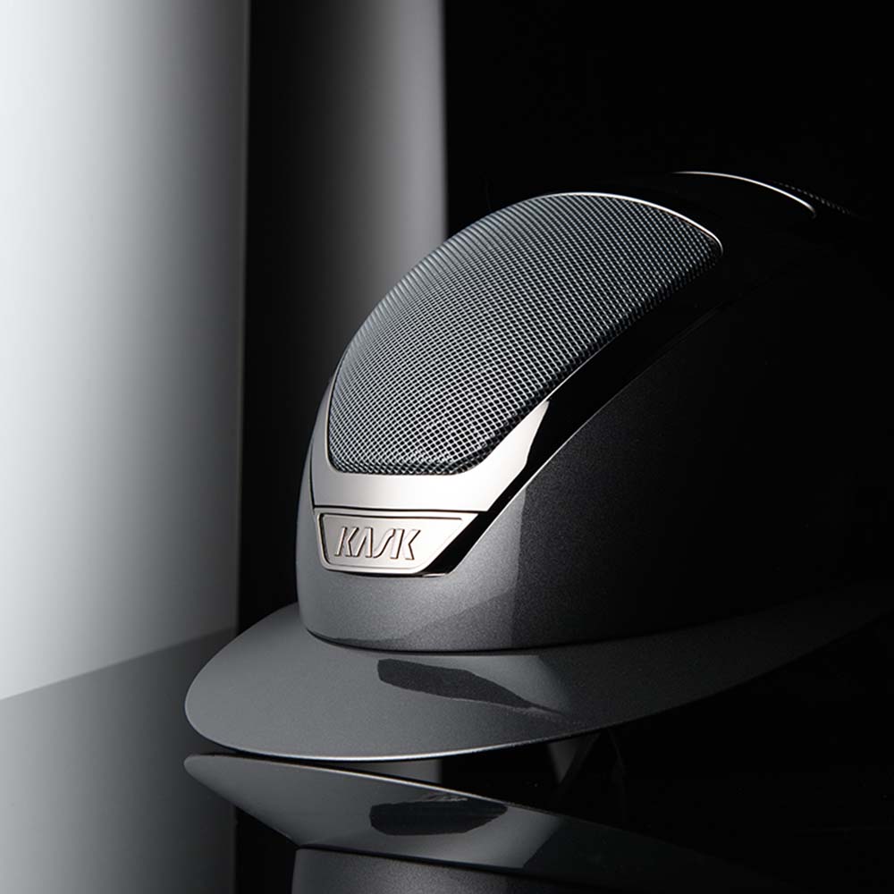 KASK Star Lady Pure Shine, här i färgen Anthracite, är en högkvalitativ ridhjälm med bred solskärm som kombinerar säkerhet, komfort och en elegant, modern design. Den högblanka ytan möts av glänsande kromdetaljer i ton-i-ton med skalet, vilket ger ett stilrent och snyggt intryck.
