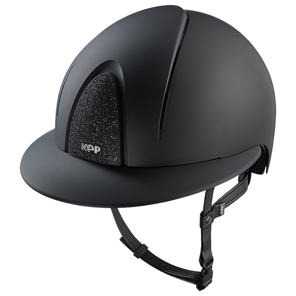 Denna svarta utgåva av KEP Smart Nova Matt Polo Star, med en matt finish, gnistrande glitterdetaljer och en bred solskärm, är en väl genomtänkt och noggrant framtagen ridhjälm, utvecklad för att erbjuda en kombination av pålitligt skydd och optimal komfort. Hjälmens yttre skal i ABS-plast kombineras med ett invändigt EPS-lager som effektivt dämpar stötar vid fall eller slag. Den förlängda bakdelen följer nackens form och ger ett extra skydd över ett känsligt område - utan att på något vis begränsa rörelseförmågan.