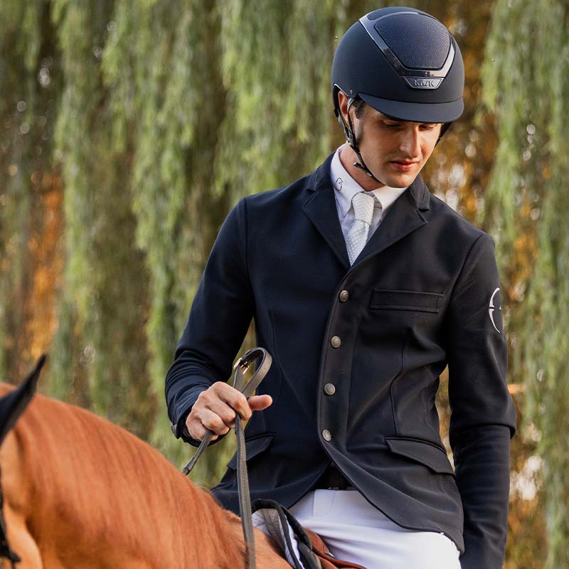 KASK Dogma Chrome, här i marinblått, är en högkvalitativ ridhjälm med standardskärm som kombinerar säkerhet, komfort och en elegant, modern design. Den matta ytan bryts av med diskreta kromdetaljer i ton-i-ton med skalet, vilket ger ett stilrent och snyggt intryck.