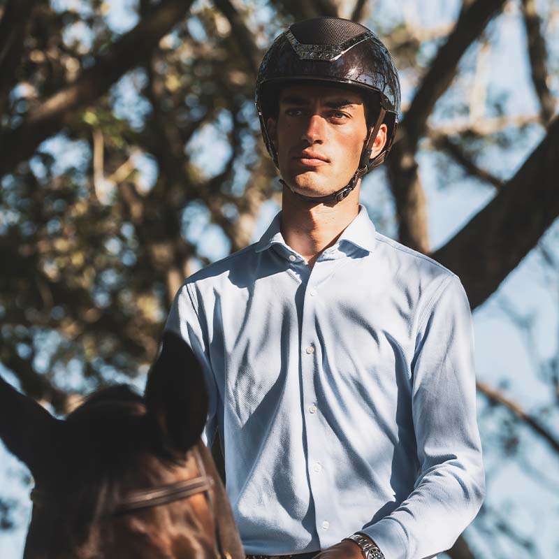 KASK Dogma Pure Shine, här i färgen Espresso Brown, är en högkvalitativ ridhjälm med standardskärm som kombinerar säkerhet, komfort och en elegant, modern design. Den högblanka ytan möts av med glänsande kromdetaljer i ton-i-ton med skalet, vilket ger ett stilrent och snyggt intryck.