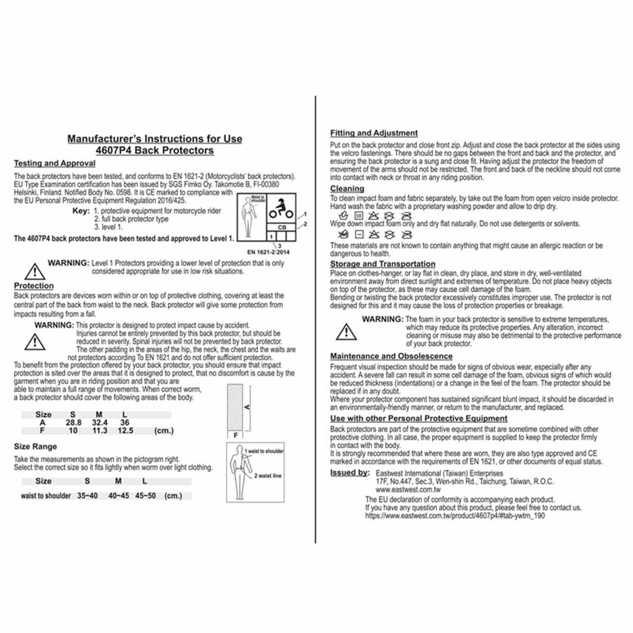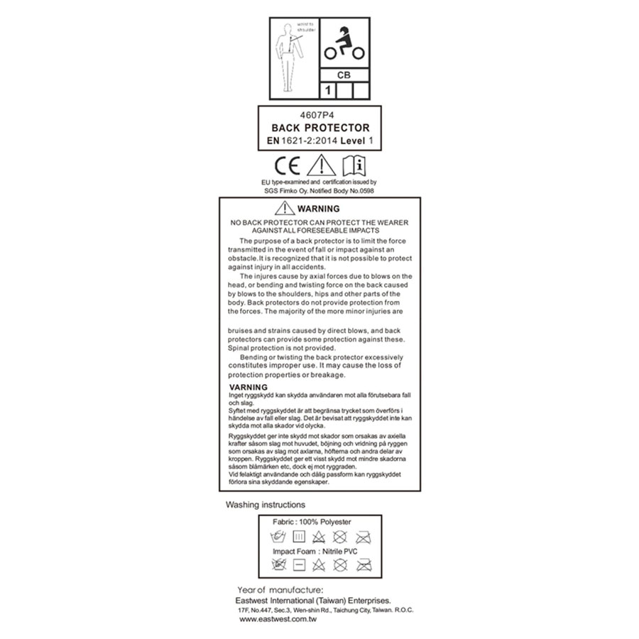 - Godkänd enligt EN 1621-2, level 2