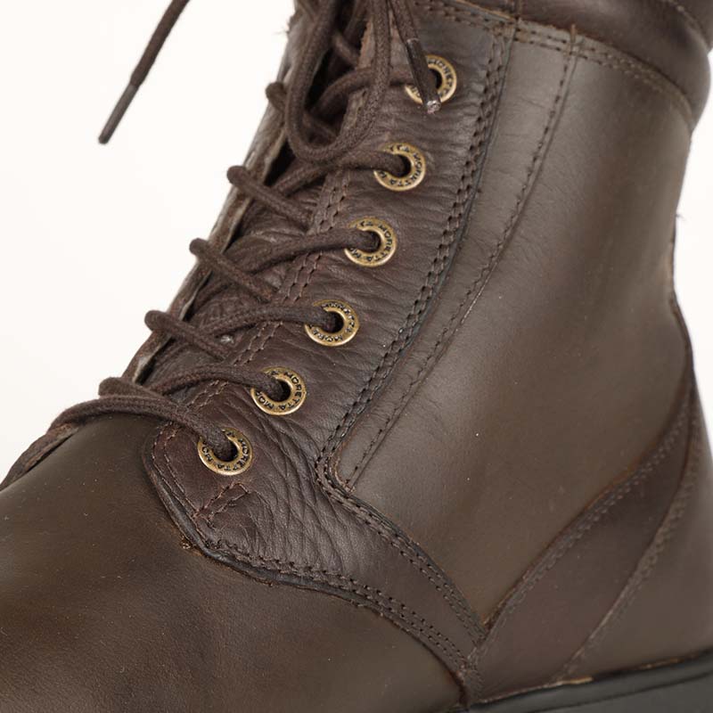 Upptäck Varese vinterridkängor från Moretta, designade för att hålla dina fötter varma och torra under kalla ridturer. Dessa bruna läderkängor är tillverkade av vattenavvisande oljat läder som kräver minimalt underhåll, vilket gör dem till ett praktiskt val för den moderna ryttaren. Snörningen framtill ger en justerbar passform, och det inre membranet blockerar effektivt vatten från att tränga in. Med ett lyxigt termiskt foder och fuskpäls hålls kylan ute, samtidigt som materialet andas och effektivt transporterar bort svett och fukt. Den anatomiskt utformade ActiveFlex-innersulan och Moretta XTR-Terrain yttersulan erbjuder både stötdämpning och utmärkt grepp, vilket gör dem perfekta för utmanande terräng.