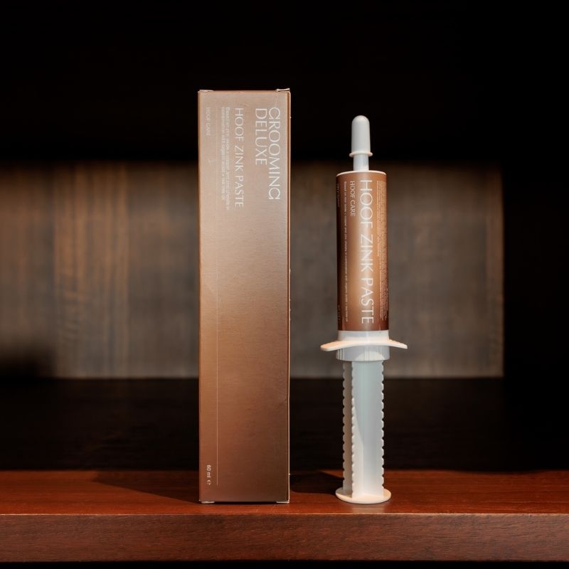 Equi Hoof Zinc Paste är en hovvårdspasta framtagen för att ge optimal vård och stärka strålen. Den är berikad med zinkoxid, koppar och zinkkelat, organiska syror samt tea tree-olja, vilket ger ett effektivt skydd och stöd för hovens hälsa. Den tjocka pastan har en god vidhäftningsförmåga och sitter kvar länge på hoven, vilket gör att den kan verka där den behövs som mest – direkt på strålen.