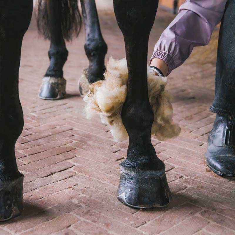 Grooming Deluxe by Kentucky erbjuder en ny standard för hästskötsel med sin terapeutiska 150g ull. Denna 100% äkta fårull är perfekt för hästar med hudproblem som mugg och andra hudallergier. Ullen är rik på lanolin, vilket ger naturlig hydrering och hjälper till att avlägsna vätska samt minska svullnad. Dessutom påskyndar den läkning från hudproblem och stödjer friska senor och leder. Varje förpackning innehåller 150g ull, som säljs i sitt naturliga tillstånd för att bevara de fördelaktiga egenskaperna. Ullen är lös i påsen, vilket gör den mycket mångsidig och möjlig att använda helt efter behov. För hygieniska skäl rekommenderar vi att använda ullen endast en gång.