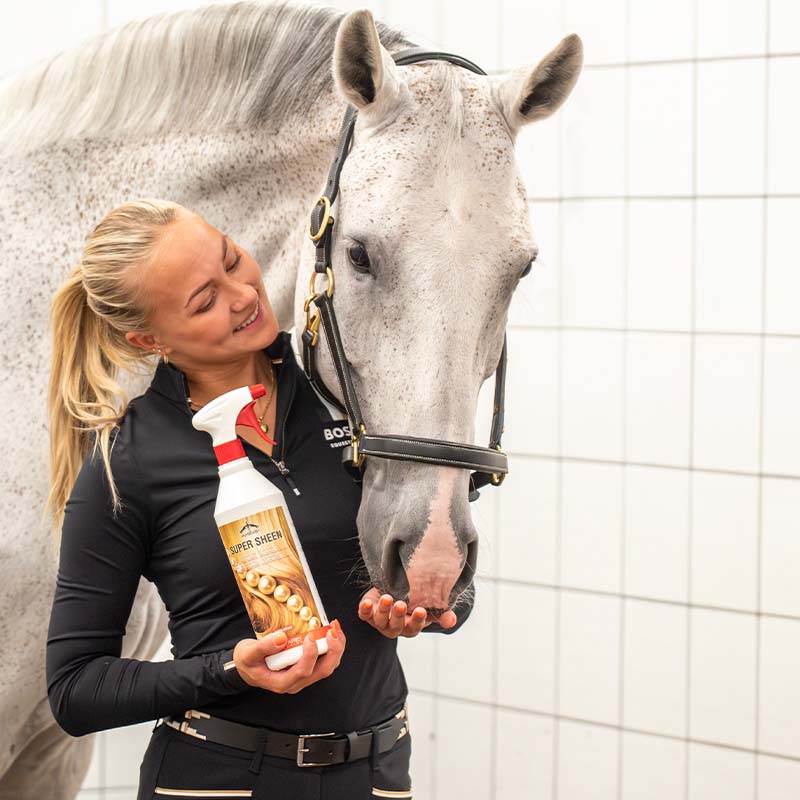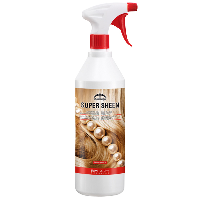 Super Sheen pälsglans från Veredus som ger pälsen en fantastisk lyster och gör det lätt att borsta ur man och svans. Fungerar effektivt på alla typer av päls och gör den glansig utan att för den skull göra den hal och jobbig att ha schabrak och liknande på. Populär pälsglans som med fördel kan kombineras med schampoot i samma serie.