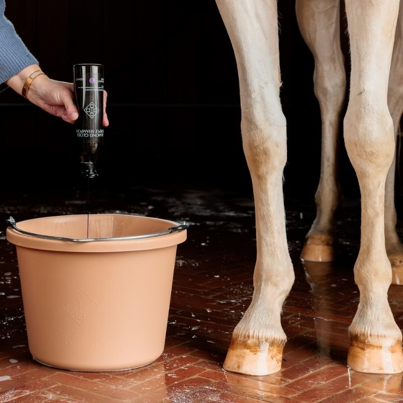Blöt hästens päls noggrant med vatten. Applicera schampot direkt i pälsen och massera upp ett rikt lödder. Vid svåra fläckar kan schampot användas koncentrerat och appliceras direkt på de utsatta områdena. Skölj noggrant, gärna med ljummet vatten.