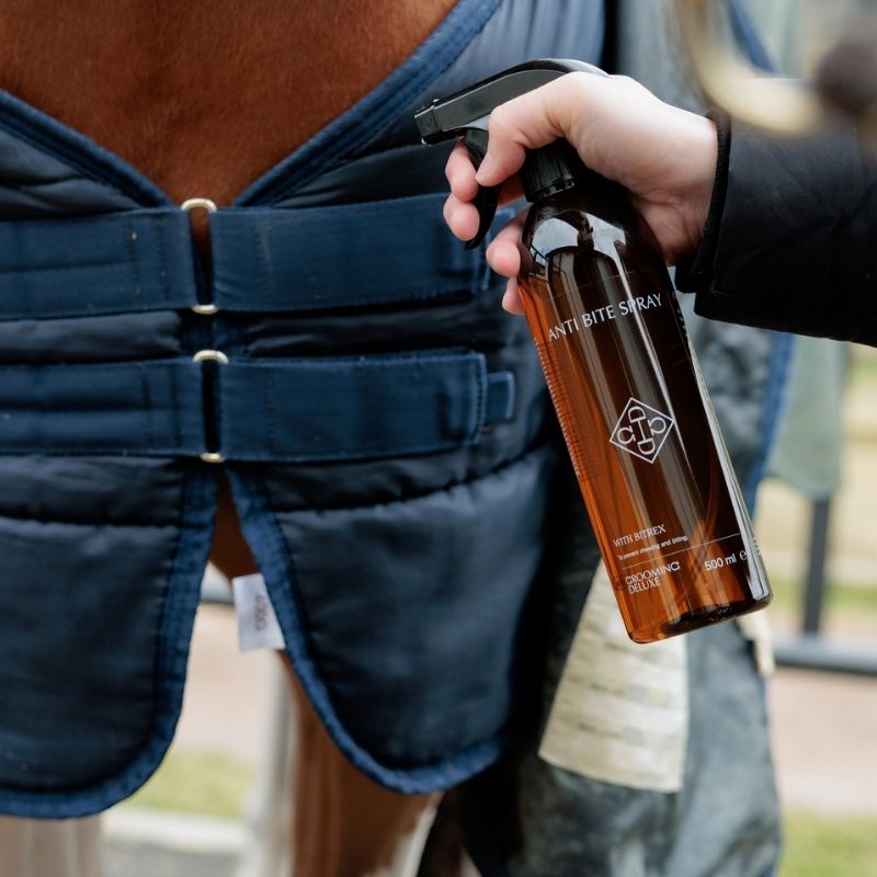 - Förhindrar tuggande och gnagande på täcken, bandage och stallutrustning