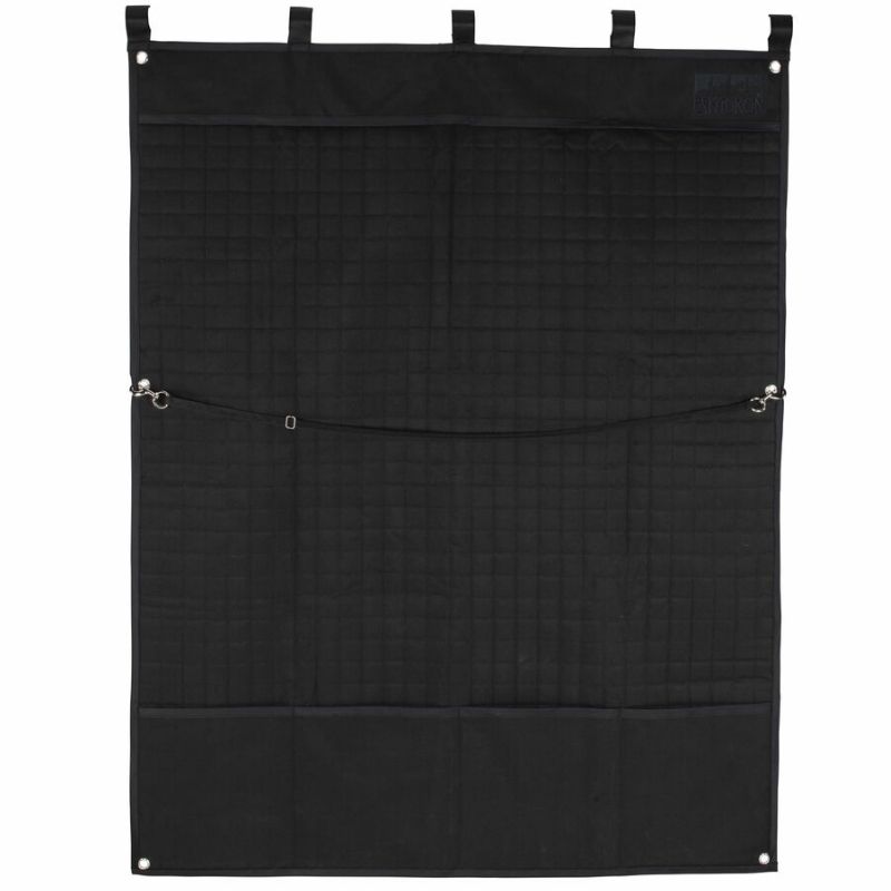 Eskadron Boxgardin Quilt Long i svart är en stabil och praktisk lösning för din hästbox. Den har en klassisk quiltad design med ett blankt kantband som ger ett stilrent utseende. För flexibel och säker upphängning finns justerbara kardborrfästen, och öljetter i hörnen och på långsidorna ger alternativ för fastmontering. Praktiska fickor erbjuder extra förvaringsutrymme, och dolda krokar upptill gör det enkelt att hänga upp träns och andra tillbehör. En central rem ger ytterligare upphängningsmöjligheter, exempelvis för schabrak. Boxgardinen mäter 190 x 150 cm.