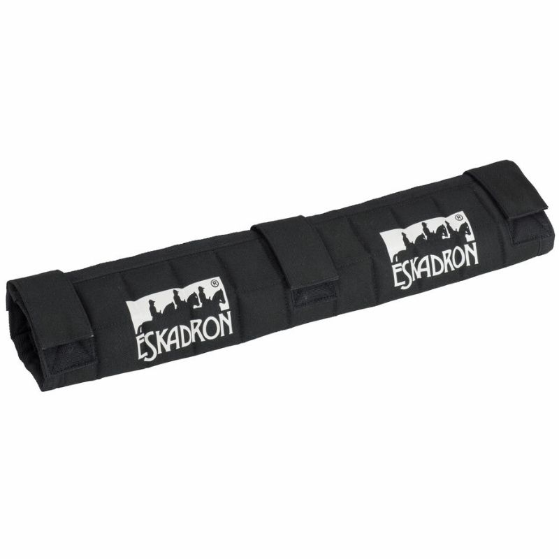 Eskadron Stable Head Protector är ett quiltat boxskydd i svart, tillverkat av robust polypropen. Det är designat för att skydda hästens huvud i boxen eller under transport. Skyddet mäter 50 x 30 cm och fästs enkelt med tre kardborrfästen, vilket gör det både praktiskt och säkert.